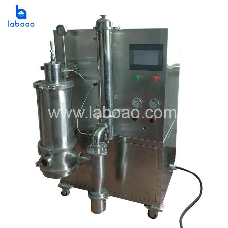 LSP-2000 lab low temperature spray dryer is deliberately designed for thermo-sensitive materials by LABOAO company. Fast drying of thermo-sensitive material has always baffled scientific research personnel. General vacuum drying and Spray drying bring great damage to material biological activity or structure. Freeze drying is time-consuming and inefficient, and dried materials are in bulks which require a second grinding. Based on long-term contact with research personnel, LABOAO company has realized that low-temperature spray dryer can effectively help research personnel solve thermo-sensitive material drying difficulty and deliberately developed LSP-2000 laboratory low-temperature dryer.